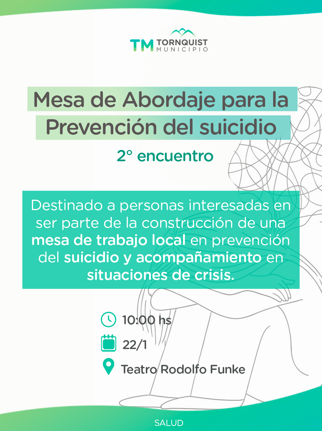El segundo encuentro de la Mesa de Abordaje para la Prevención del Suicidio, se llevará a cabo este jueves 22 a las 10 h en el Teatro Municipal ‘Rodolfo Funke’.