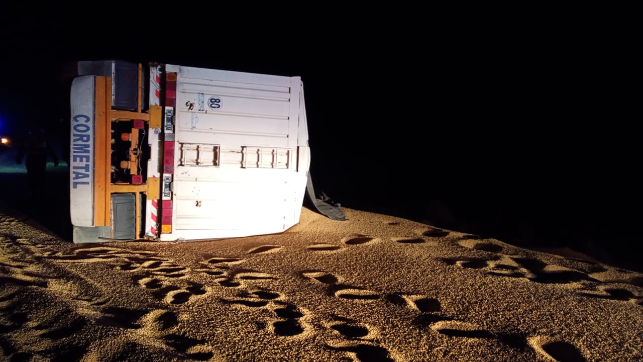 Hasta el momento, las autoridades no han brindado mayores detalles sobre el estado de salud del conducto. La carga que transportaba el vehículo pesado era cereal.