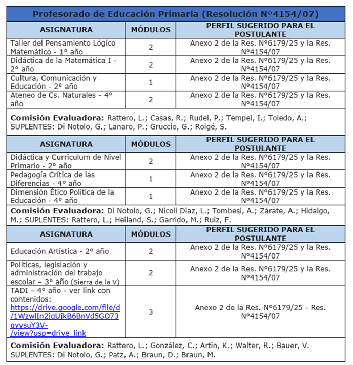 – Fecha de clase pública/entrevista: a partir del 08/05/26. La misma será en horario de 18 a 22 hs. y se avisará a los postulantes con 72 hs. o más de antelación.
