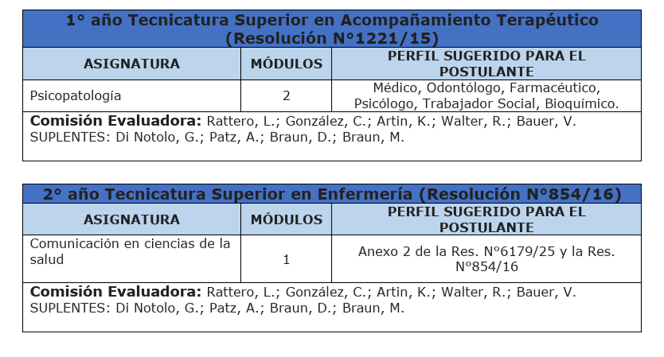 – Fecha de clase pública/entrevista: a partir del 08/05/26. La misma será en horario de 18 a 22 hs. y se avisará a los postulantes con 72 hs. o más de antelación.