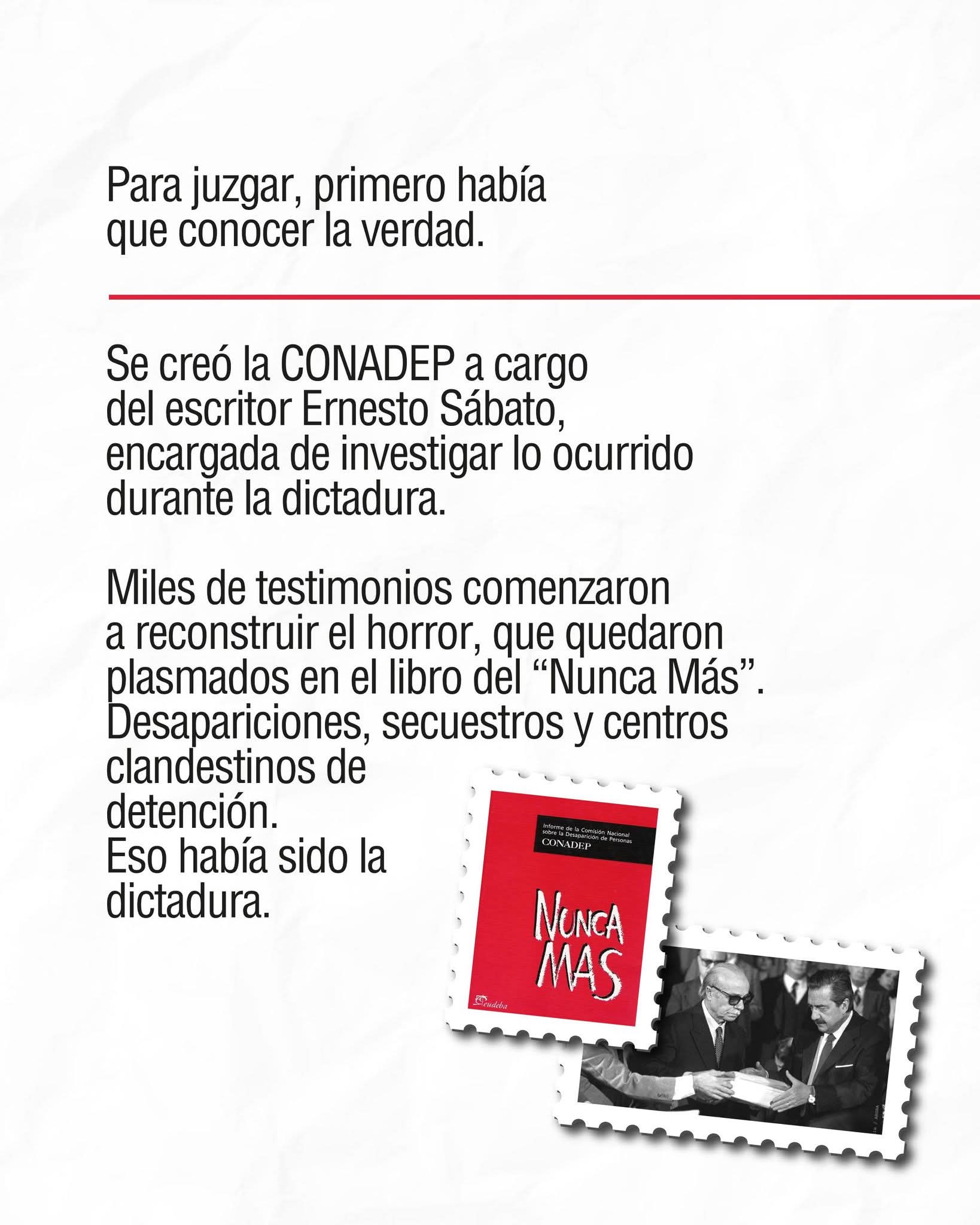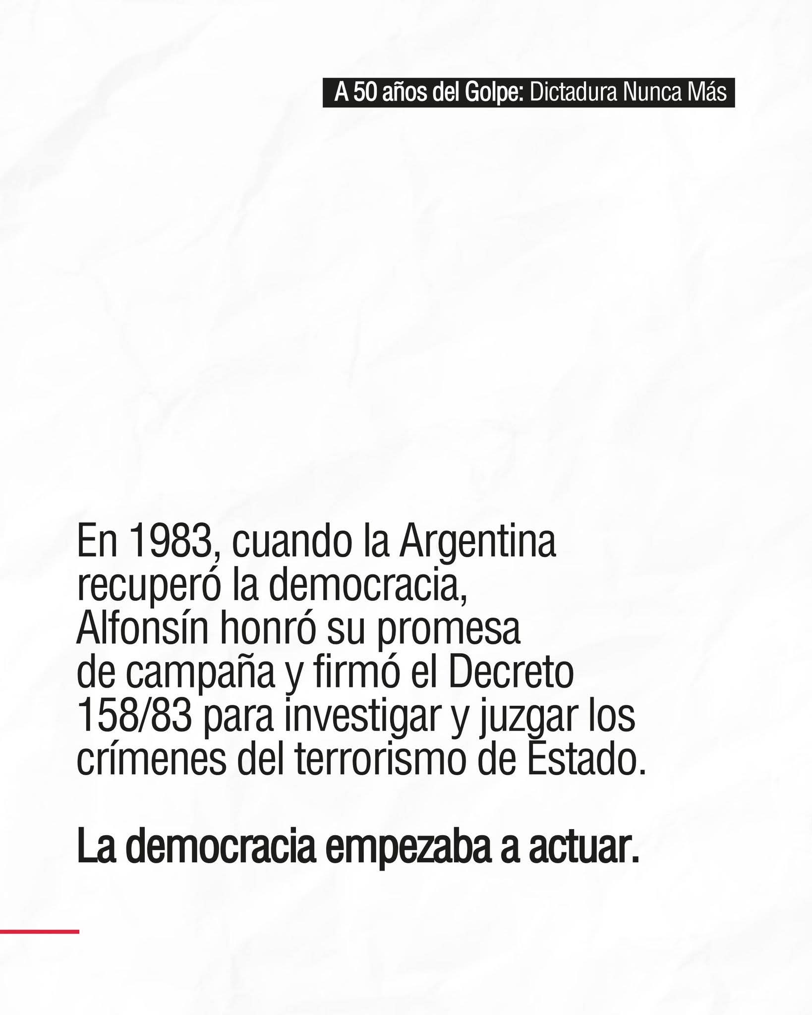 Esa decisión marcó un antes y un después en la Argentina. Sentó las bases de un consenso democrático que debe perdurar en la historia: Memoria, Verdad y Justicia.