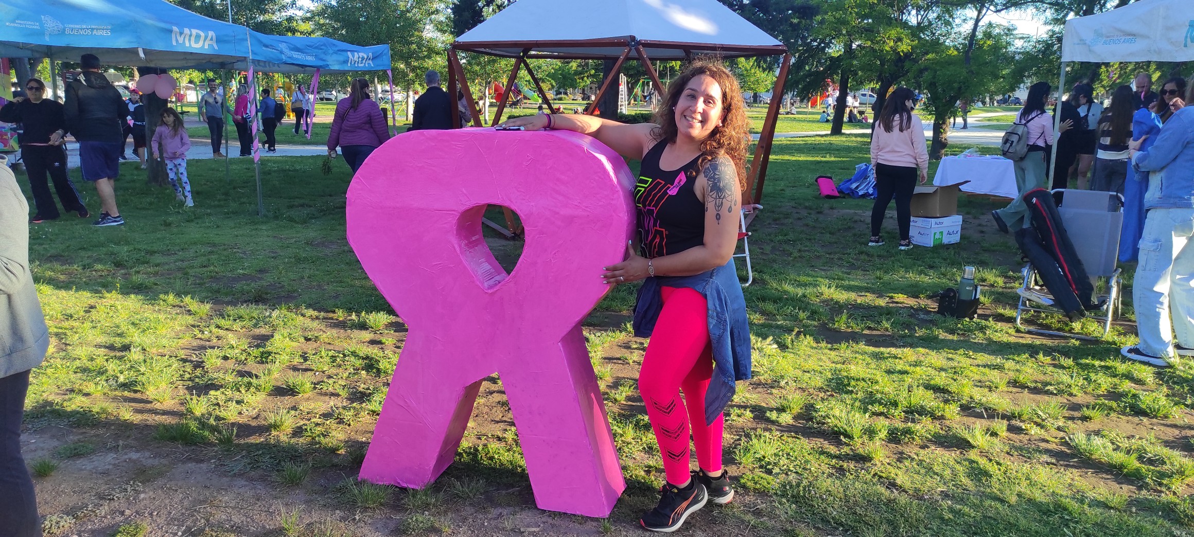 La Plaza de Tornquist fue testigo de un emotivo relato en el marco del cierre del Octubre Rosa, de la mano de Mariel Llanos, docente y profesora de Zumba Kids, quien compartió su experiencia tras haber recibido el alta de un intenso tratamiento contra el cáncer de mama hace apenas quince días.