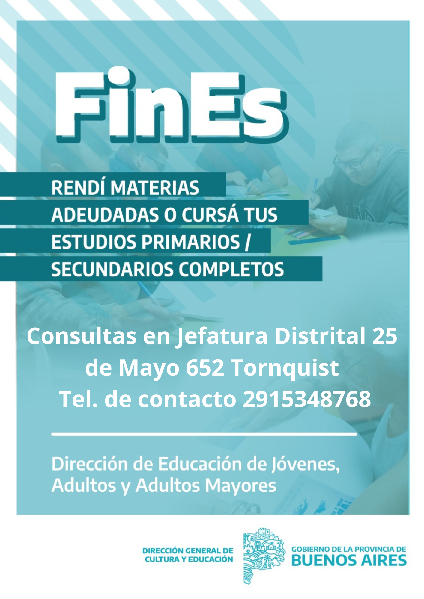 La Coordinación Distrital del Plan FinEs informa a toda la comunidad que ya se encuentra abierta la inscripción para aquellos interesados en culminar sus estudios secundarios o rendir materias pendientes de ciclos anteriores.