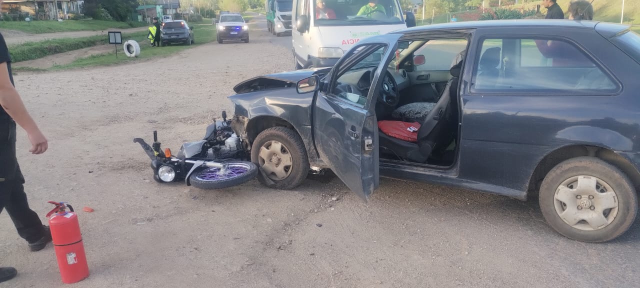 La motocicleta quedó debajo del automóvil, y su conductor fue despedido y cayó en la banquina, resultando con heridas leves.