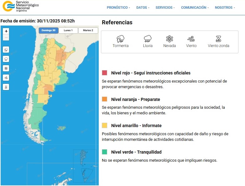 El Servicio Meteorológico Nacional (SMN) emitió una advertencia para la tarde de este domingo por fenómenos que podrían incluir granizo y vientos fuertes . La inestabilidad con lluvias persistirá también durante el inicio de la semana.