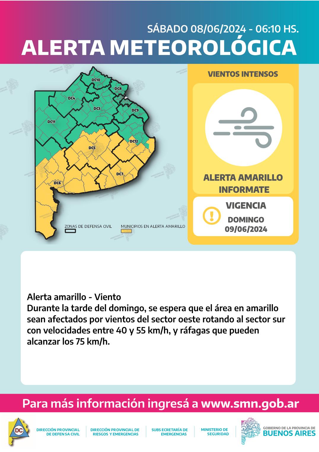 Defensa Civil del municipio de Tornquist y PBA* informan sobre la Situación meteorológica para el domingo 9/6/24 –