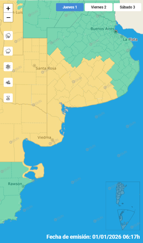 Para este primer día del año el pronostico anticipa la jornada más crítica.