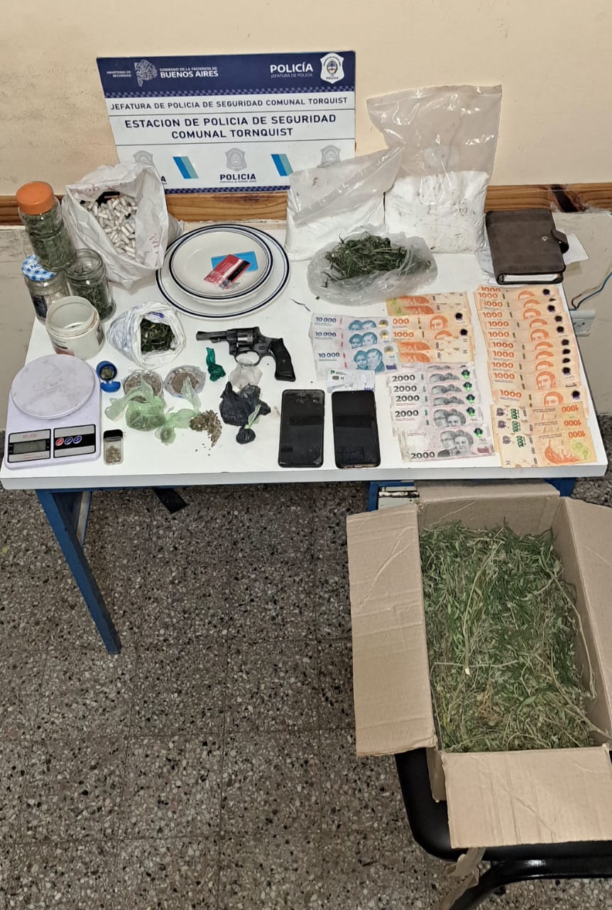 Durante el allanamiento, la policía secuestró varios elementos, incluyendo celulares, marihuana, cocaína, un revolver calibre 22, dinero en efectivo, balanzas de precisión y elementos de corte y fraccionamiento. También se incautaron anotaciones relevantes para la investigación.