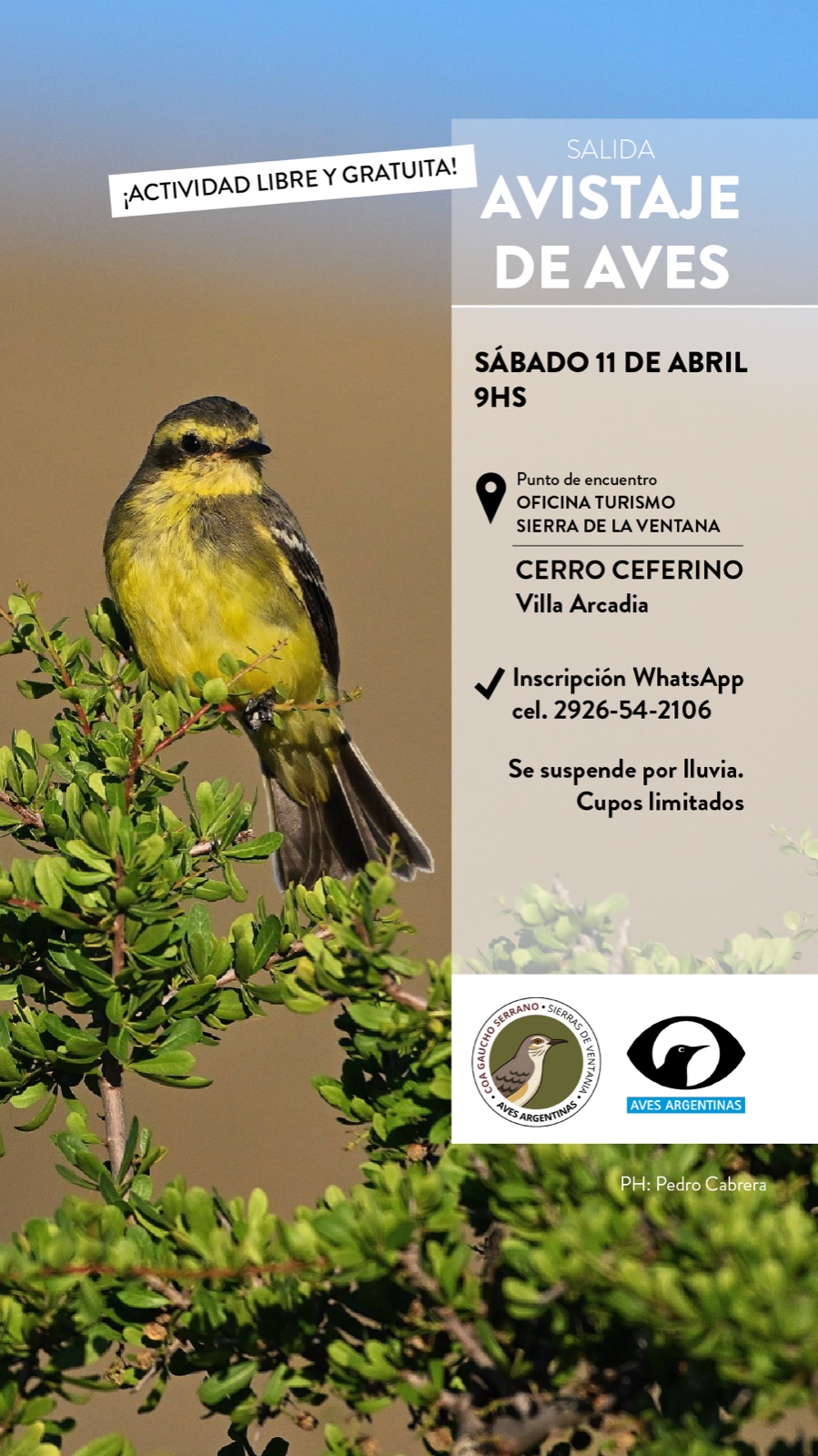 Este sábado 11 de abril de 2026, la comarca serrana se prepara para conectar con la naturaleza de una forma distinta. Se invita a vecinos y turistas a participar de una caminata guiada de observación de aves en Sierra de la Ventana.