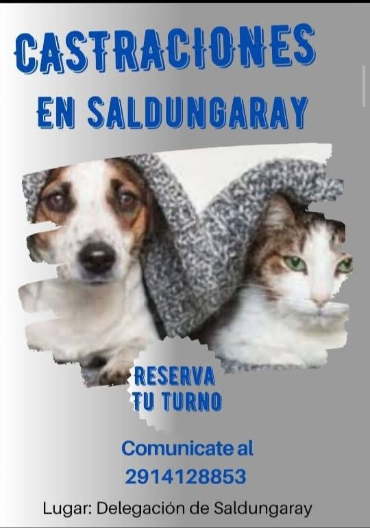 Sandra Romiti, referente de la protectora PUAF (Por Un Animal Feliz), informó que desde este mes se realizarán castraciones de animales todos los meses en la localidad de Saldungaray, con inscripción previa al teléfono 2914128853 (Manuel Aramberri), donde se otorgará fecha y hora para cada procedimiento.