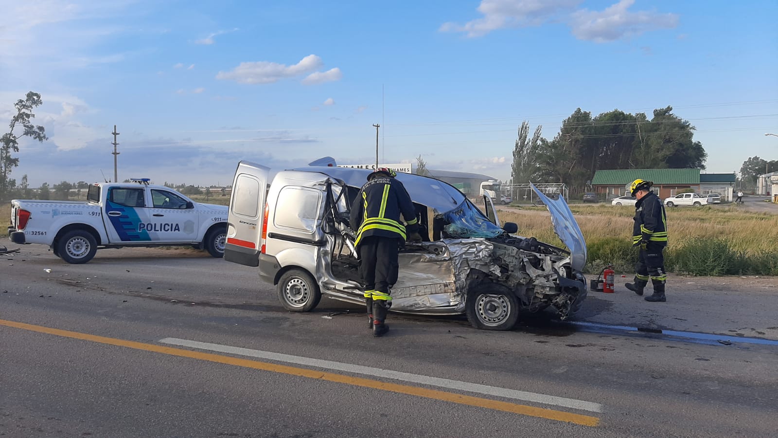 Siendo 18:50 se produce un accidente de tránsito en ruta 3 km 697 (entre el Cholo y rotonda Cerri) Colisionaron de frente, un utilitario Renault Kangoo conducido por un masculino de 43 años, acompañado por otro masculino de 33 años de edad, con un camión Scania P410 que transportaba combustible, al mando de otro masculino de 50 años.