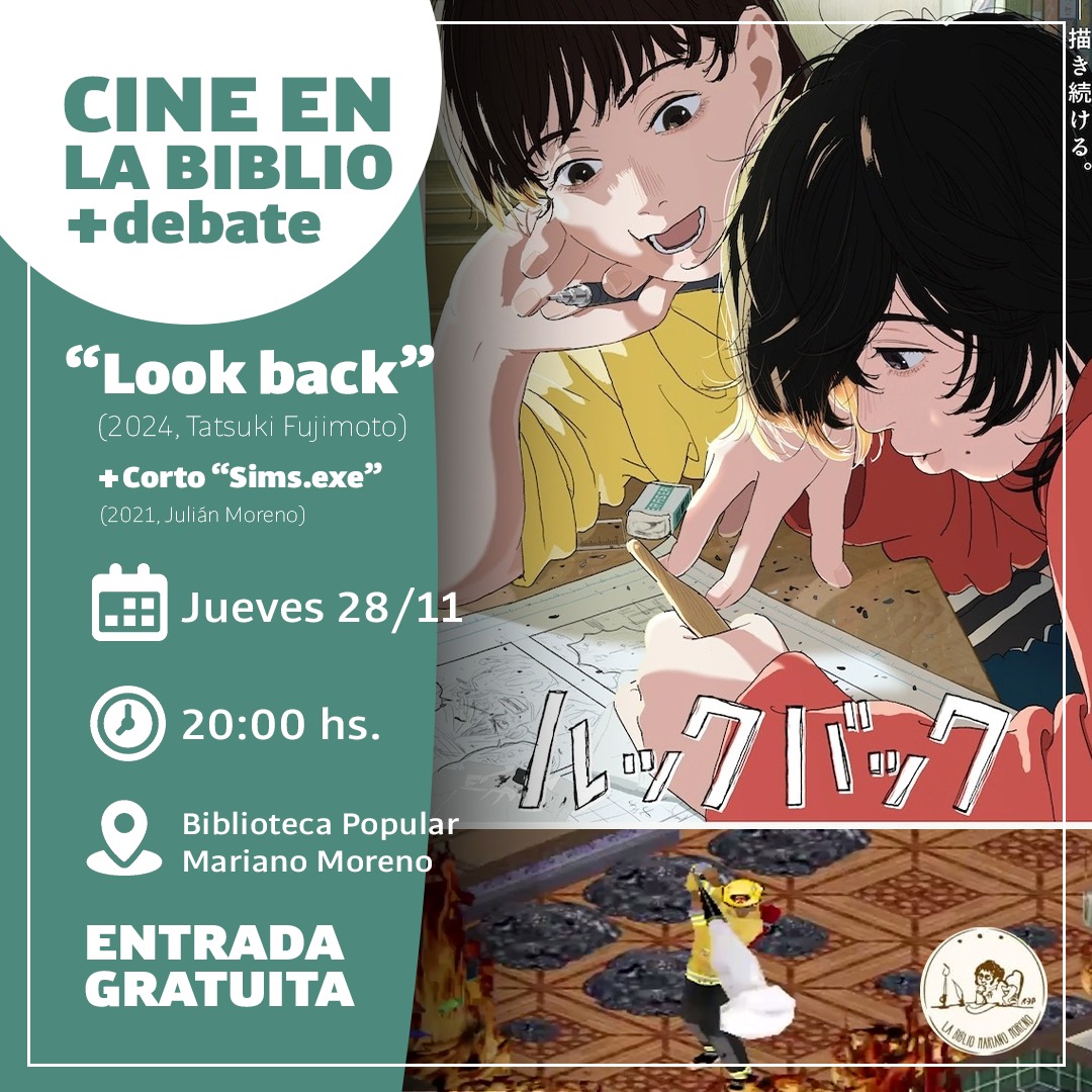 Este jueves 28/11, a las 20.00, los/as esperamos para ver la peli «Look back» y «Sims. exe», el corto de Julián Moreno.