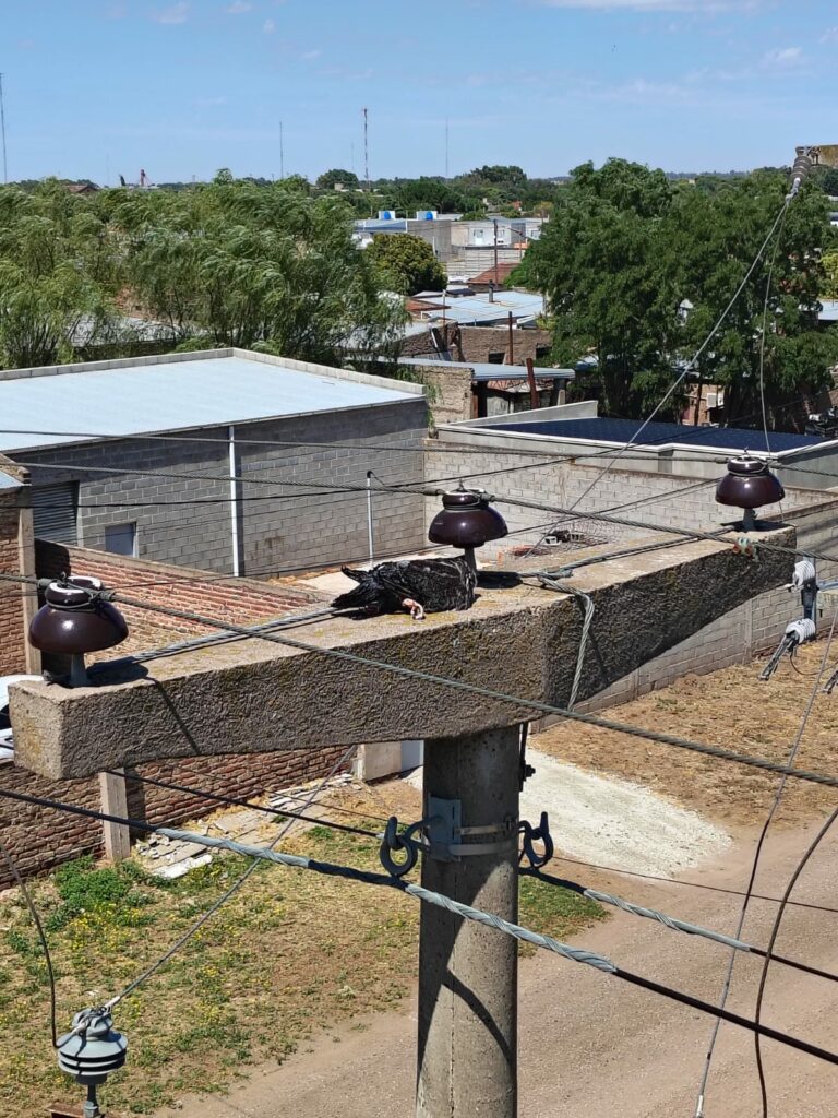 Una paloma hizo una descarga en un poste de media tensión frente al cementerio local, activando el interruptor de la línea de 13,2 kv en la subestación de EDES. provocando un corte de energía a las 10:35 hs.