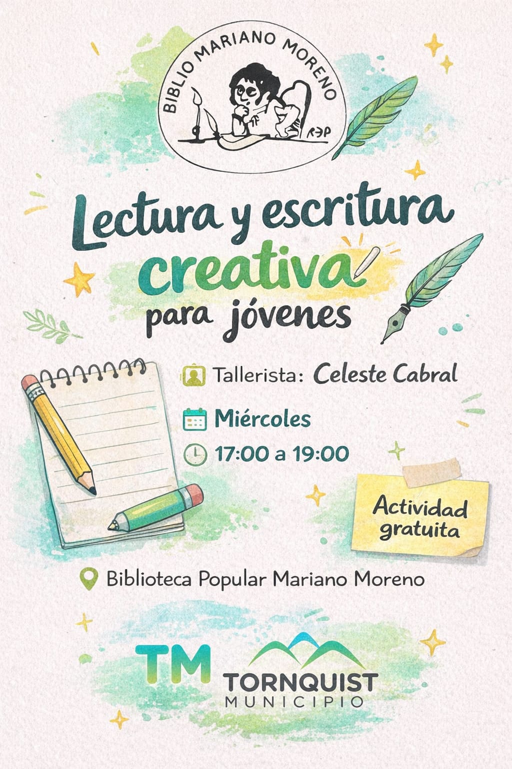 La Biblioteca Popular Mariano Moreno ha diseñado una ambiciosa y diversa agenda de propuestas culturales para este ciclo 2026, reafirmando su compromiso con la promoción de la lectura, la escritura y la expresión artística en todas las edades. Este año, la grilla se destaca no solo por la calidad de sus talleristas, sino por un aspecto fundamental: todas las actividades son de carácter gratuito para la comunidad.