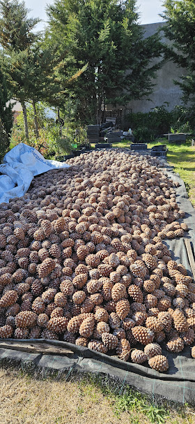 La producción es tan artesanal como desafiante. Entre mayo y octubre, las piñas se cosechan a mano, trepando árbol por árbol con una vara con gancho en la punta para hacerlas caer. Luego se acopian y, durante el verano, se secan naturalmente al sol hasta que se abren. Una máquina separa la semilla y finalmente se obtiene el piñón.