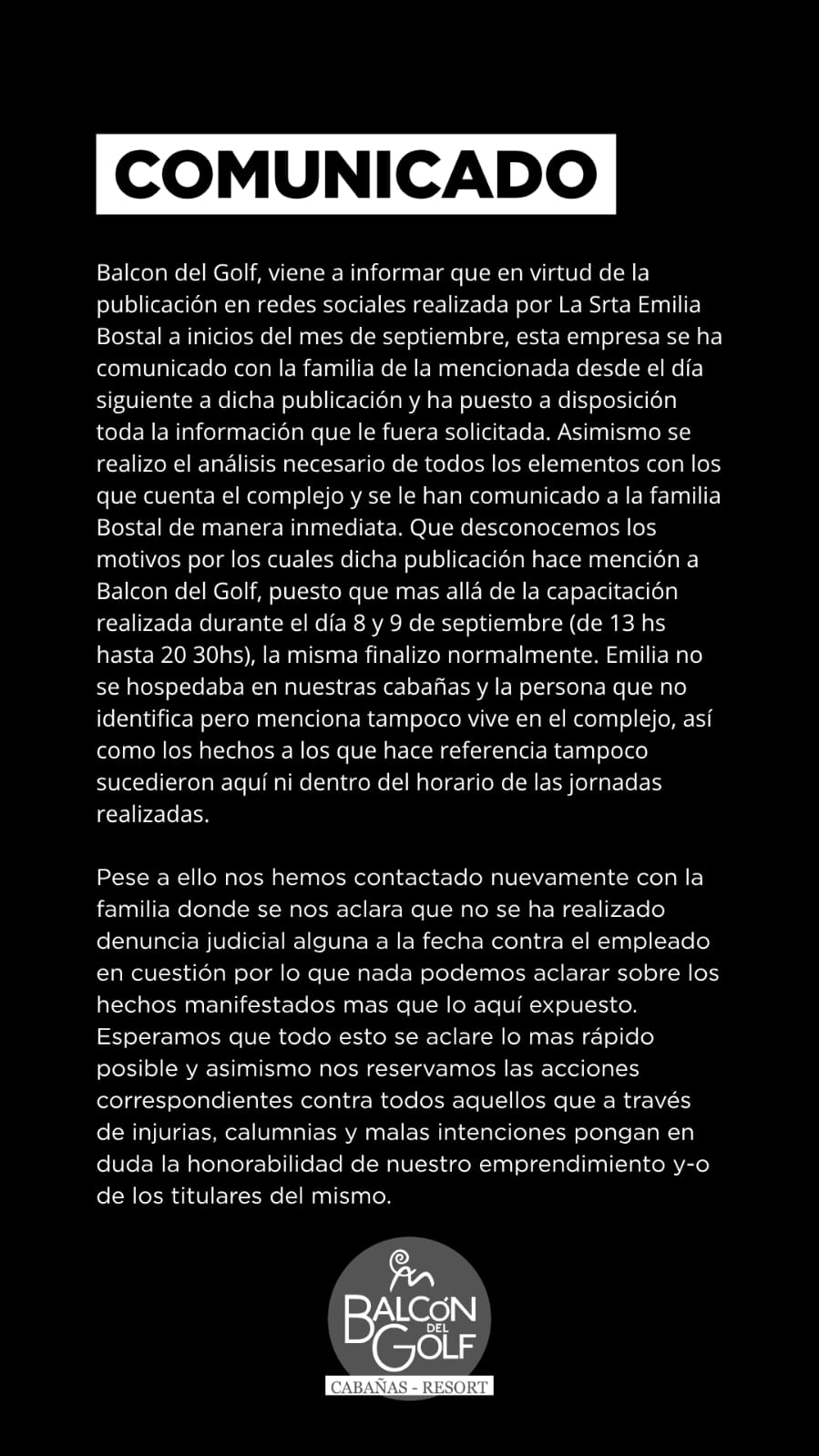 En las últimas horas la firma Balcón del Golf salió al cruce y también escribió un comunicado al respecto, asegurando que “esta empresa se ha comunicado con la familia de la mencionada desde el día siguiente a dicha publicación y ha puesto a disposición toda la información que le fuera solicitada”.