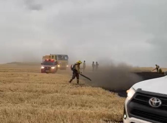 Debido a la sequedad del material, las llamas alcanzaron rápidamente el rastrojo de cebada, propagándose de forma inmediata pese a que las primeras precipitaciones comenzaban a caer en el sector.