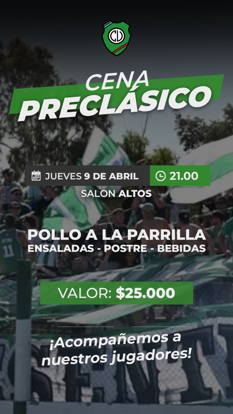 Tendrá lugar en el Salón Altos y el menú constará de pollo a la parrilla, ensalada, bebida y postre. Las tarjetas tienen un valor de $25000 y se adquieren comunicándose con cualquier miembro de la comisión directiva de la entidad.