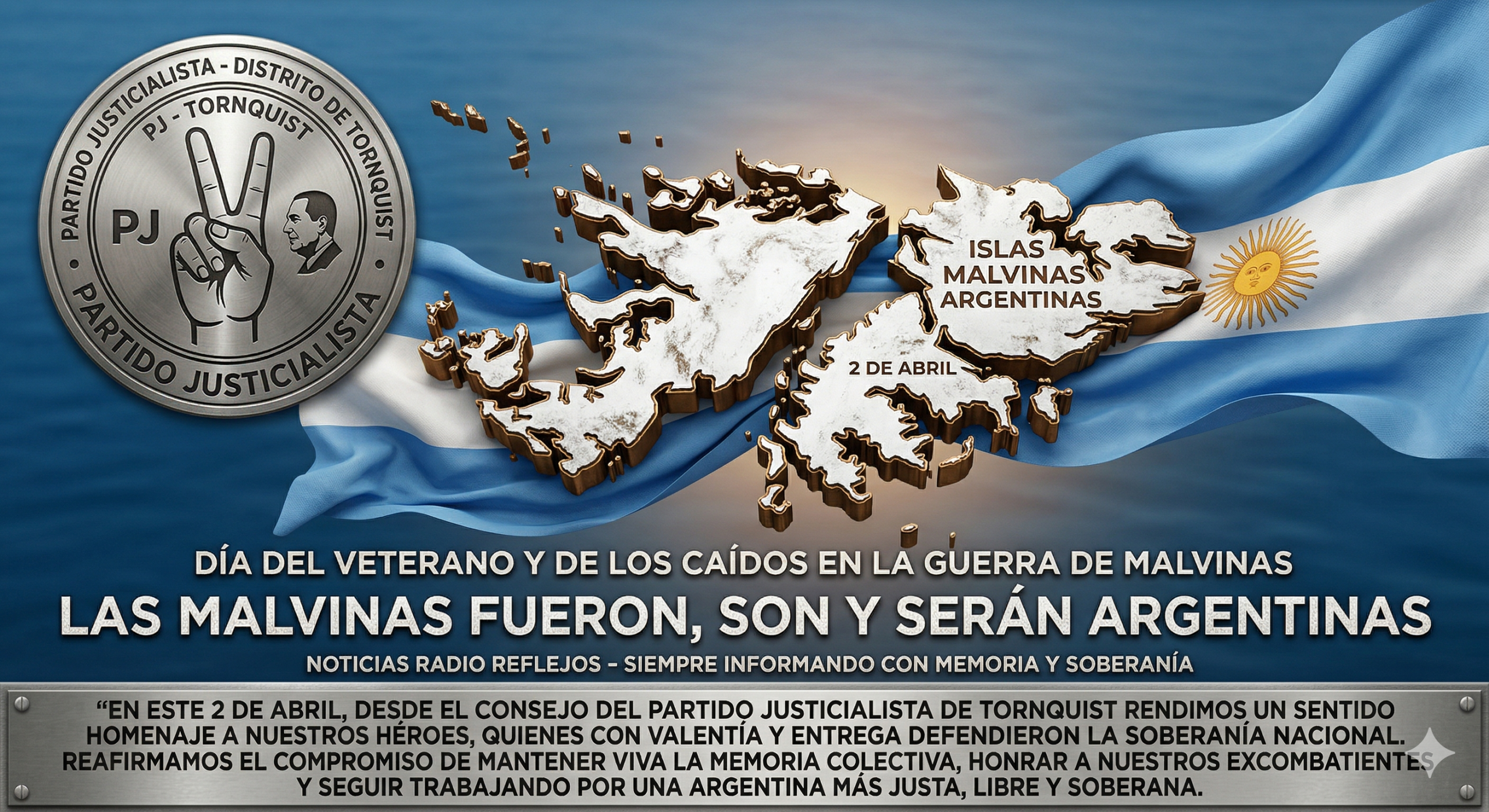 En este 2 de abril, Día del Veterano y de los Caídos en la Guerra de Malvinas, el Consejo del Partido Justicialista de Tornquist emitió un sentido comunicado de prensa para honrar la memoria de quienes dieron su vida por la Patria y expresar su gratitud a los excombatientes. Desde el espacio político reafirmaron que la causa Malvinas constituye una política de Estado y un reclamo de soberanía innegociable, que debe sostenerse con memoria, unidad y firmeza. Bajo la consigna «Las Malvinas fueron, son y serán argentinas», el PJ local ratificó su compromiso de mantener viva la memoria colectiva y seguir trabajando por una Argentina más justa, libre y soberana.
