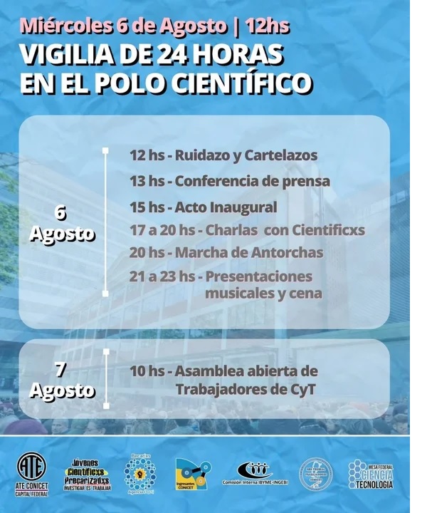 Según supo Noticias Argentinas, la medida de fuerza, impulsada por ATE y otras agrupaciones científicas, busca reclamar por mejoras salariales, el freno al ajuste presupuestario y la defensa de la ciencia pública.