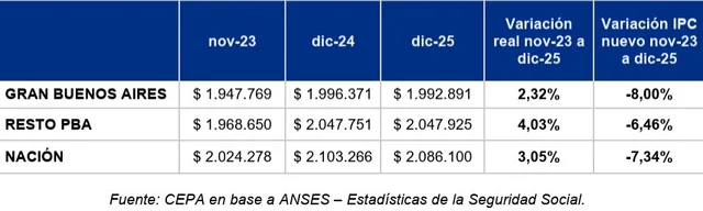 Sin embargo, el haber medio es de e $541.901, quedando por debajo del promedio nacional ($602.274) y sin llegar a cubrir dos salarios mínimos. “Un dato que muestra con claridad que el deterioro del poder adquisitivo de las jubilaciones no es un problema abstracto, sino una realidad cotidiana para millones de bonaerenses”, afirman desde el CEPA.