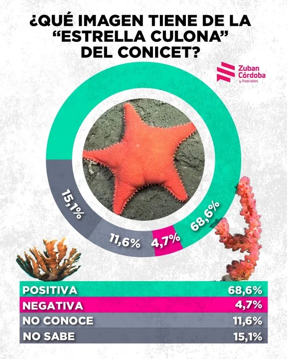 Un nuevo sondeo nacional de la consultora Zuban Córdoba y Asociados revela un fenómeno inédito en la opinión pública: la «Estrella Culona», el meme surgido de una transmisión científica del CONICET, cosecha una imagen positiva del 68,6%, una cifra que, según el propio informe, es «la envidia de cualquier político nacional».