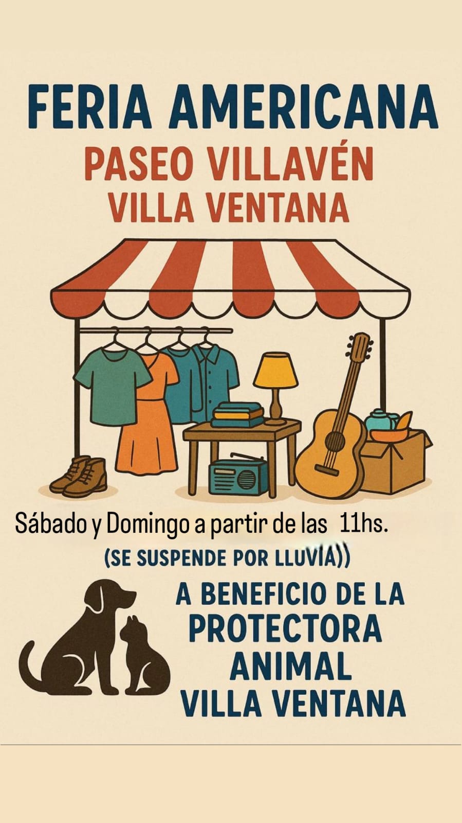 El Paseo Villavén de Villa Ventana será el escenario de una Feria Americana con fines solidarios este fin de semana. El evento se llevará a cabo el sábado y domingo a partir de las 11:00 horas, y lo recaudado será a beneficio de la Protectora Animal Villa Ventana.