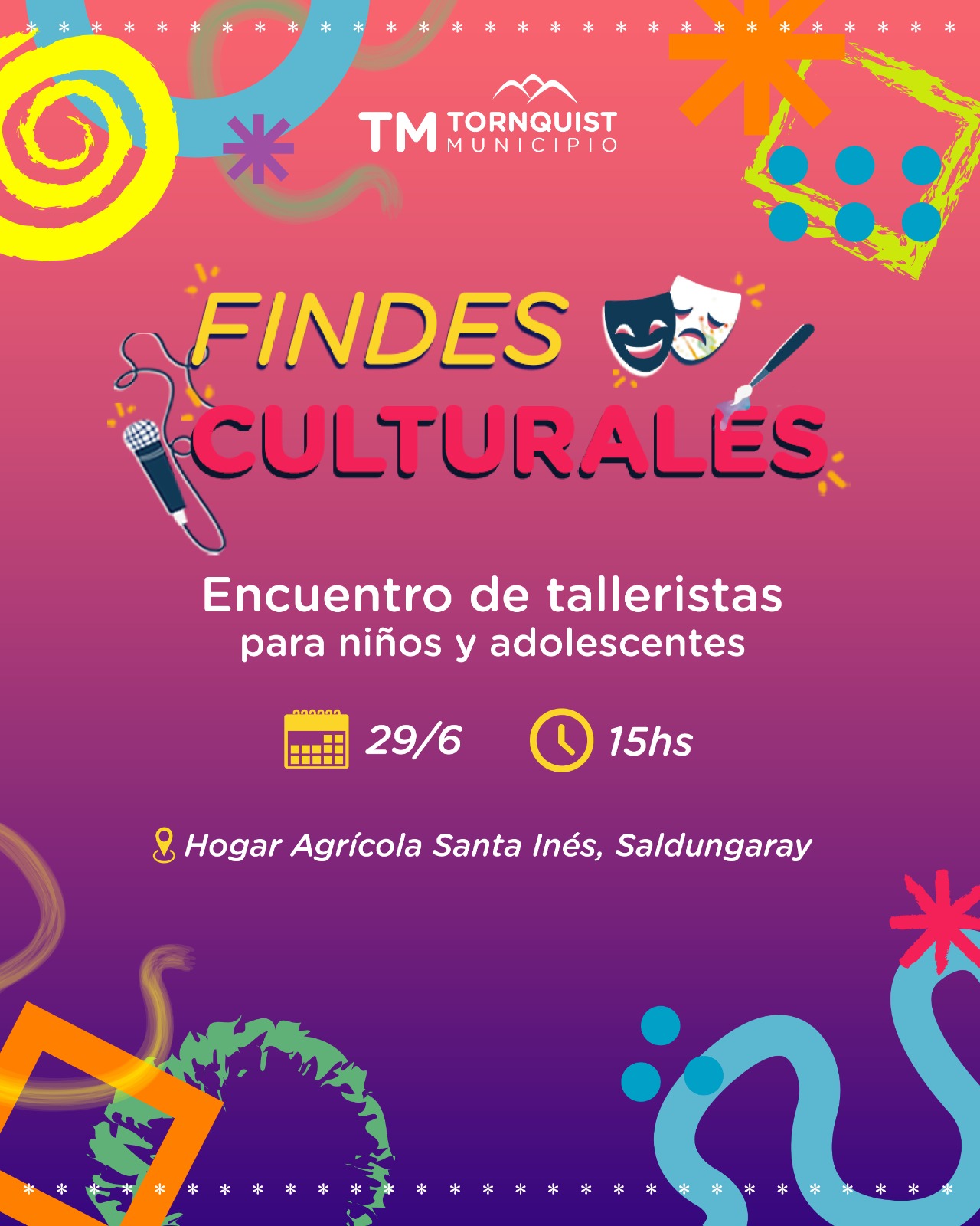 El domingo 29 de junio, se llevará a cabo el segundo encuentro de ‘Findes Culturales’, una actividad que tiene como fin generar propuestas culturales y dar a conocer a la comunidad los diferentes talleres que se brindan en Tornquist a través de asistencias técnicas municipales.