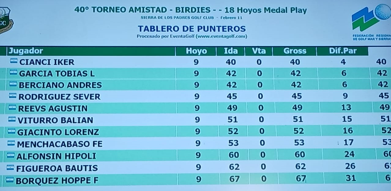 El joven talento del Golf Club de Sierra de la Ventana, Tobías García, comenzó con paso firme su participación en la 40° edición del tradicional Torneo Internacional Amistad Birdies. El certamen, que reúne a promesas del golf en los links de Sierra de los Padres, dio inicio este 11 de febrero bajo un clima de alta competitividad.