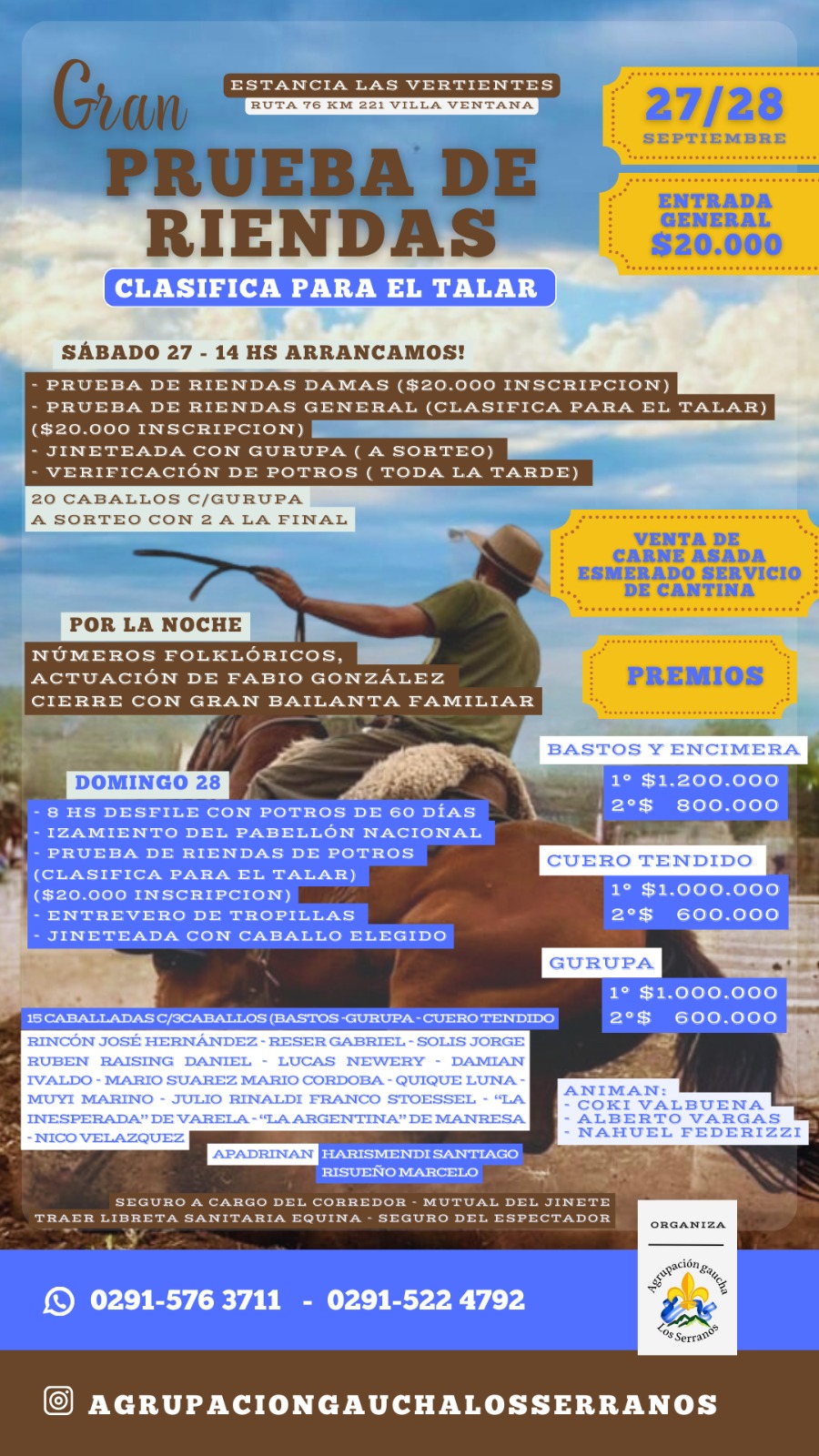«El día domingo, luego de lo que sería la prueba de rienda de potros, va a ser la entrevera de tropillas. Se hace la jura y después se juntan todos en un sector, donde se van a mezclar toda la caballada, salen las madrinas y, una vez que se hace una suelta y el primero que entabla su caballada se lleva el premio. Interviene solamente el dueño de la tropilla que presenta» explica cómo sería la actividad del día domingo 28 de septiembre.