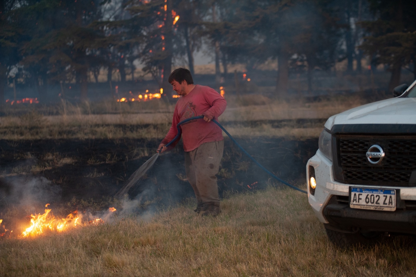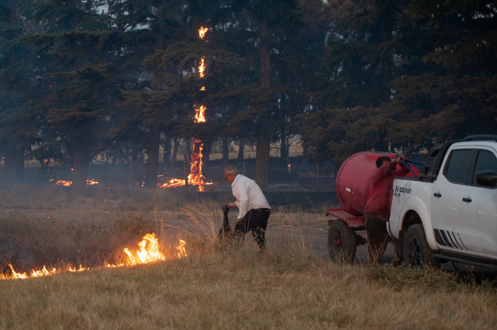 El siniestro se extendió por 15 kilómetros debido a ráfagas que superaron los 60 km/h. Hubo familias evacuadas, cortes en la Ruta 33 y un intenso despliegue de brigadistas y vecinos.