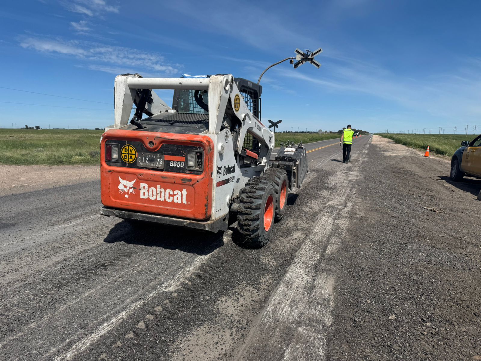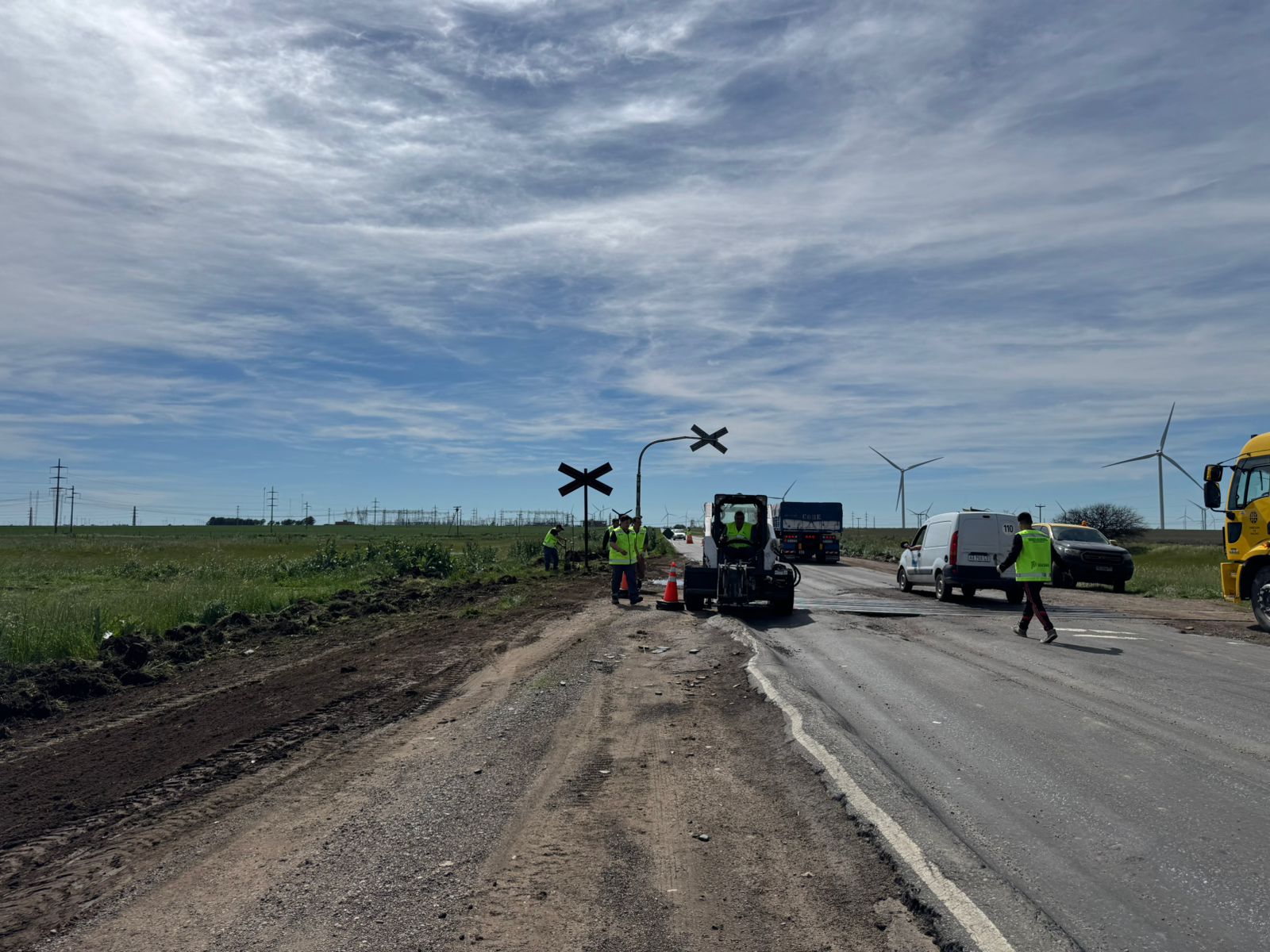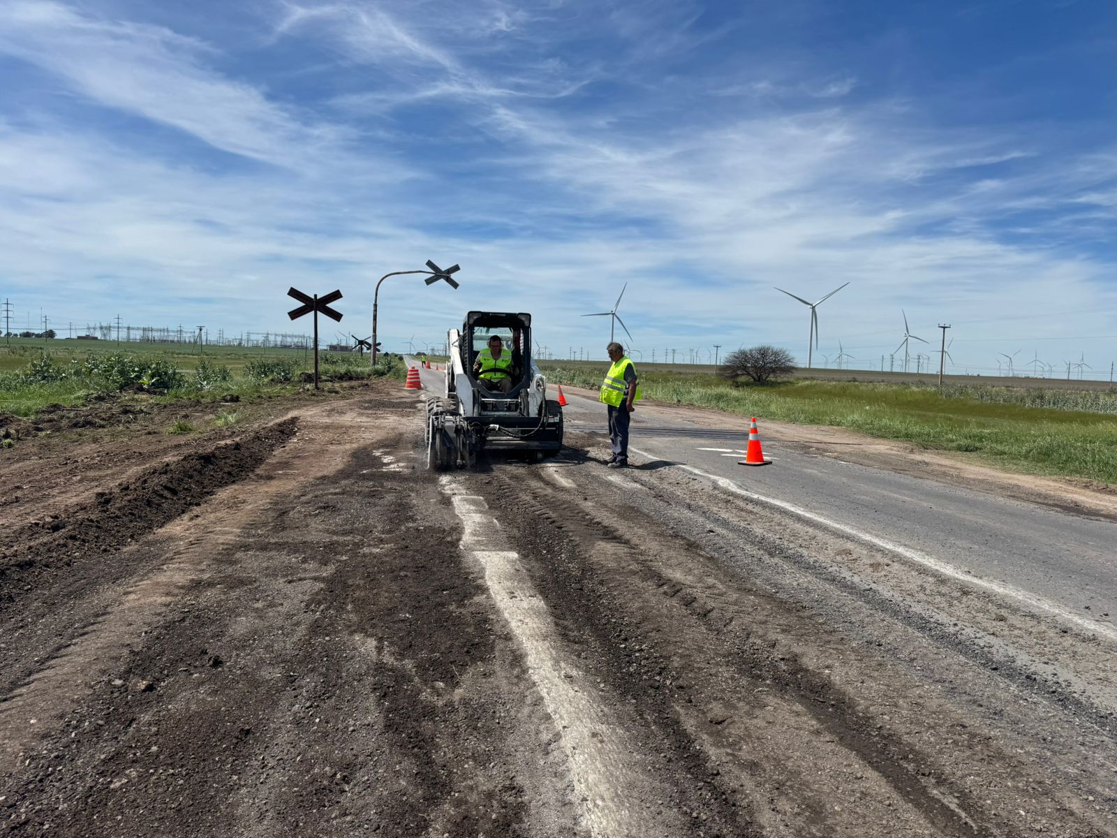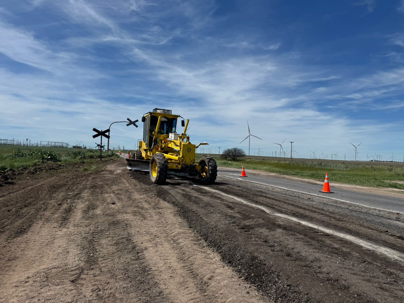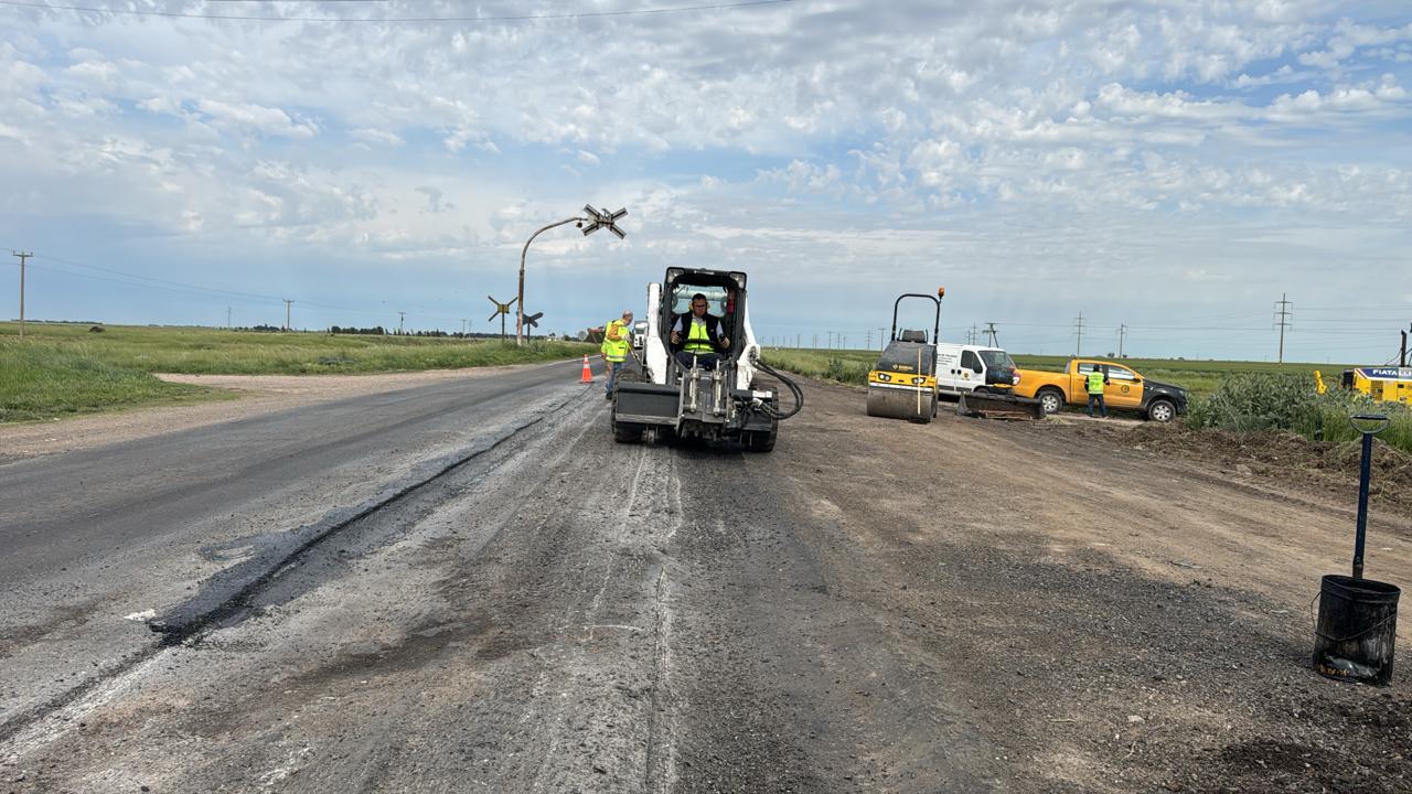 La Dirección Provincial de Vialidad realiza tareas de nivelación y fresado de la cinta asfáltica en el cruce de las vías del ferrocarril, con el objetivo de mejorar la seguridad y transitabilidad en la zona.