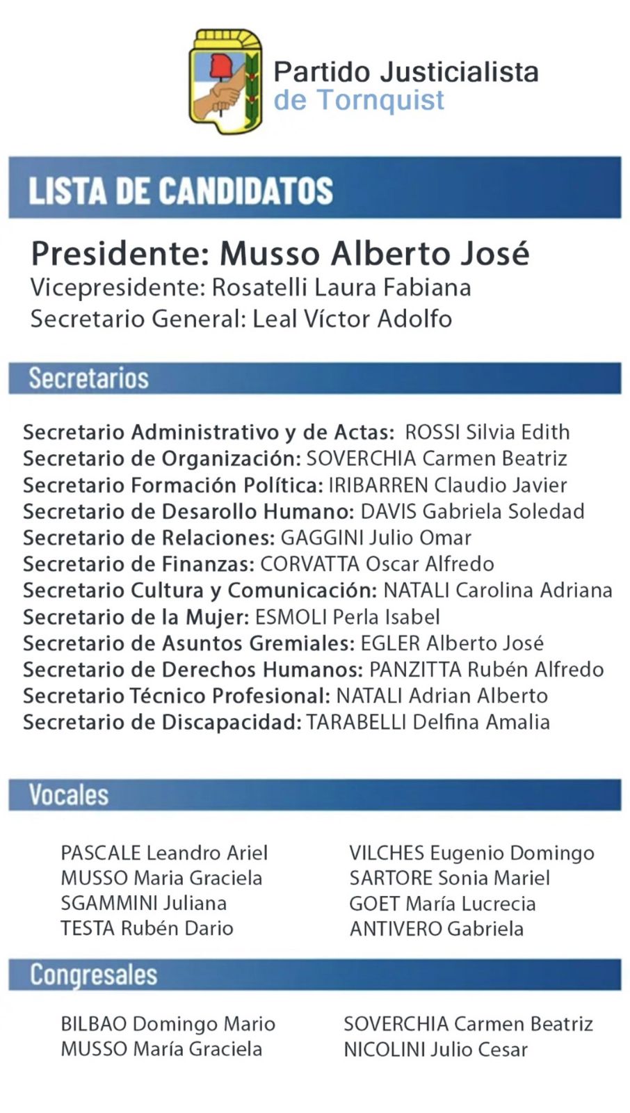 Con el objetivo de reactivar la dinámica institucional de la Unidad Básica, la lista opositora encabezada por Alberto «Tito» Musso y Laura «Lali»Rosatelli oficializó su propuesta de cara a los comicios partidarios. Bajo la premisa de devolverle el protagonismo al afiliado y marcar distancia de la gestión municipal actual, los candidatos apuestan por un Partido Justicialista presente y en contacto con el vecino los 365 días del año.