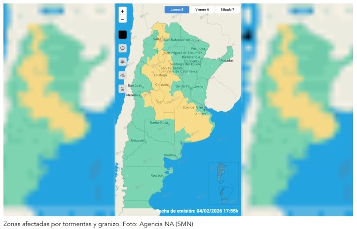 En paralelo, el Servicio Meteorológico Nacional (SMN) ha emitido una serie de alertas amarillas y naranjas por fenómenos climáticos adversos en gran parte del territorio nacional. Se prevén tormentas fuertes y la probable caída de granizo para este jueves, afectando una extensa franja que incluye a: