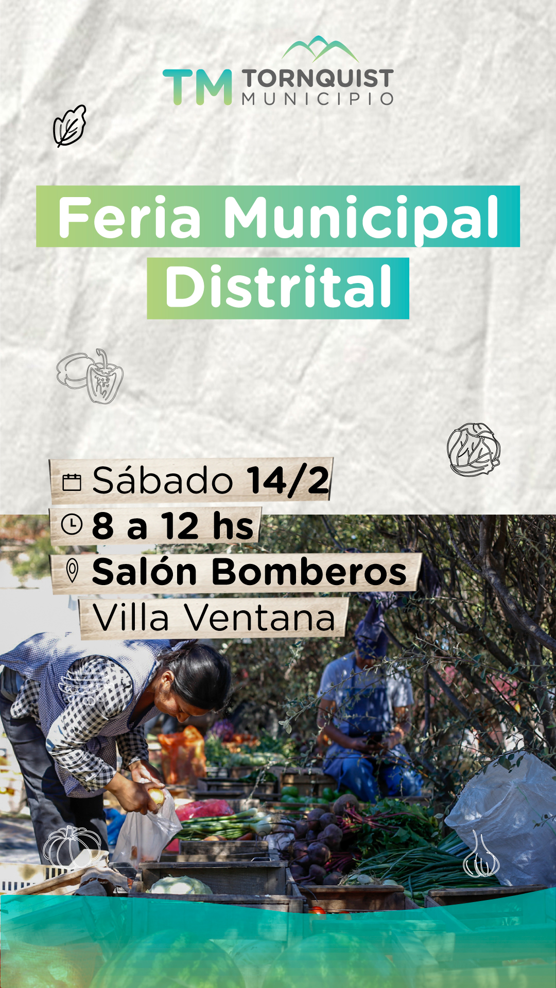 Será de 8 a 12 h en el Salón de Bomberos Voluntarios, donde productores y productoras locales ofrecerán verduras, hortalizas de estación y diversos productos de elaboración propia, garantizando calidad, cercanía y precios accesibles.