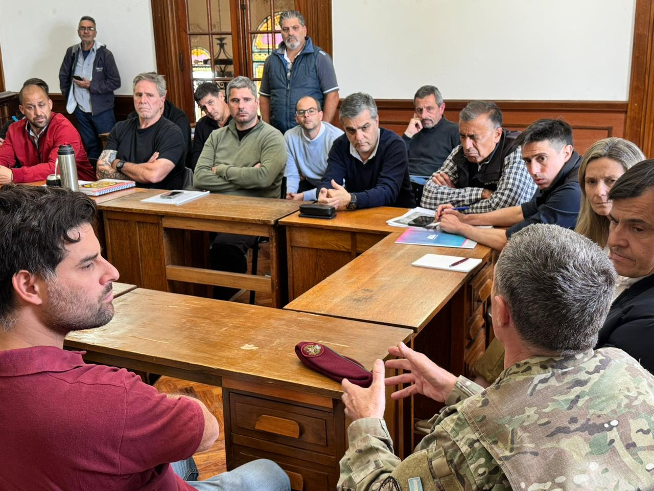 Del encuentro participaron la intendenta local María José Gentile, el director provincial de Hidráulica, Flavio Seiano; el presidente de la Autoridad del Agua, Damián Costamanga; el administrador de Vialidad de la provincia, Roni Caggiano; el subsecretario de Desarrollo Agrario, Cristian Amarilla; el director provincial de Caminos Rurales, Jonatan Sanchez Sosa; y funcionarios de la cartera de Seguridad bonaerense.