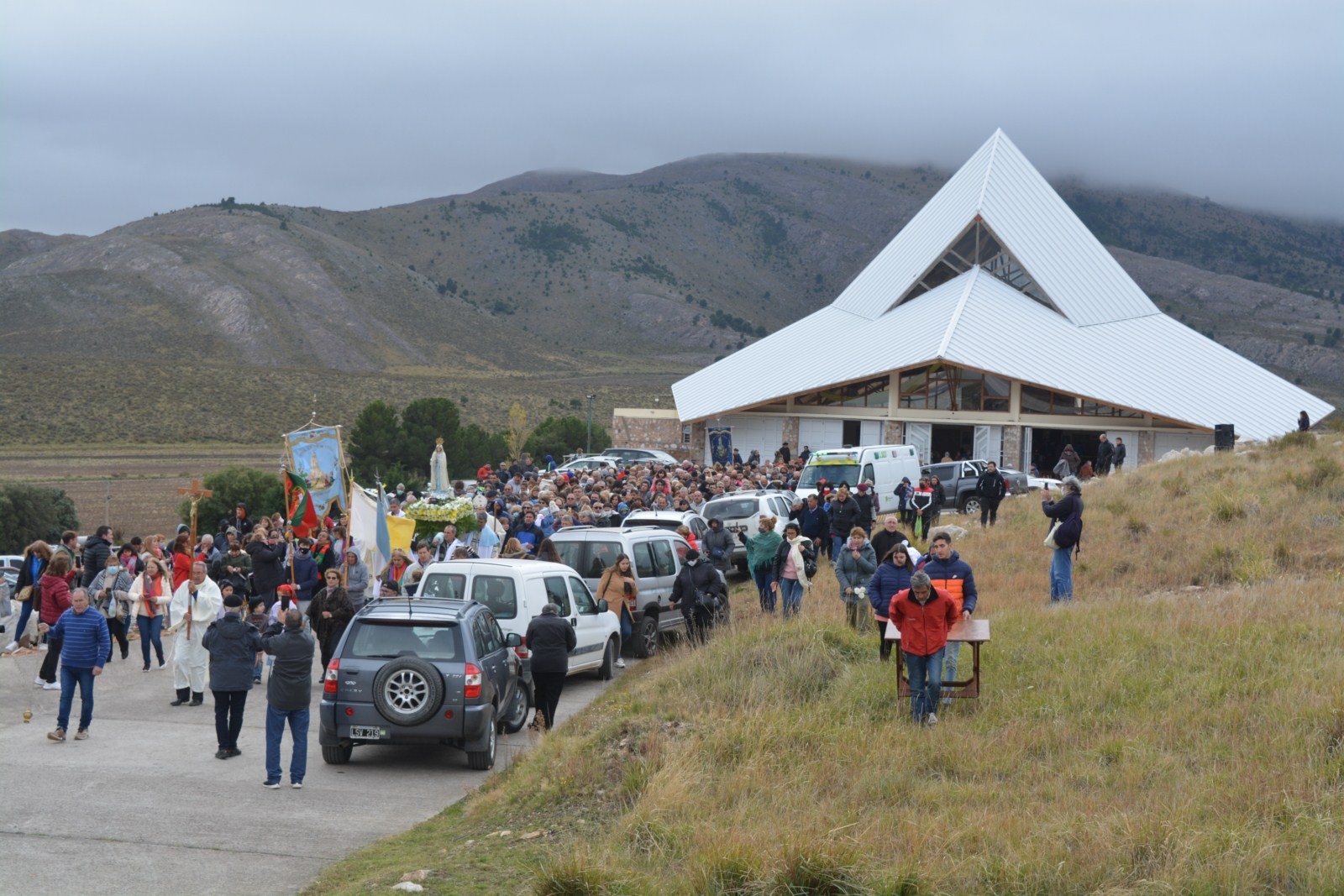 Había parado de llover, pero el cielo estaba completamente nublado. La Señora, entonces, giró la cabeza hacia el sol y Lúcia hizo lo mismo. Entonces ocurrió “el milagro” que vieron todos.