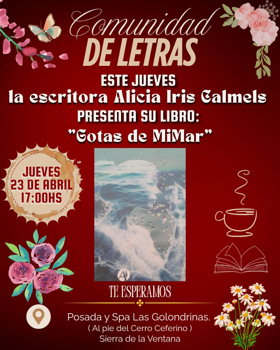 El ciclo «Comunidad de Letras» invita a una jornada especial de reflexión y literatura este jueves 23 de abril en la Posada Spa «Las Golondrinas», al pie del Cerro Ceferino. En esta ocasión, la escritora Alicia Calmels presentará su obra «Gotas de MiMar», un relato valiente y autobiográfico donde transforma su proceso de superación personal frente a una depresión profunda y el trastorno bipolar en una herramienta de sanación.