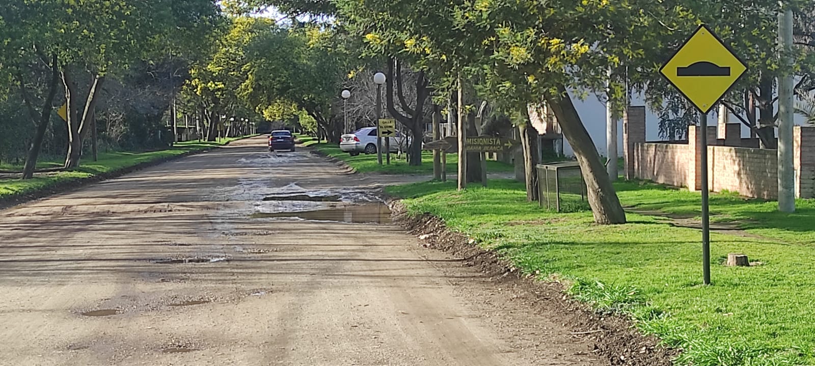 En las últimas semanas se han instalado varios de estos reductores dentro de la localidad, todos cuentan con su correspondiente cartel señalizador en los 15 metros previos; según estimaciones visuales, estos lomos tienen una altura aproximada de 9 a 12 cms de altura por un metro de ancho. Tambien se realizaron varias mesetas entre el puente ferroviario y el dique balneario por la Calle Costanera.