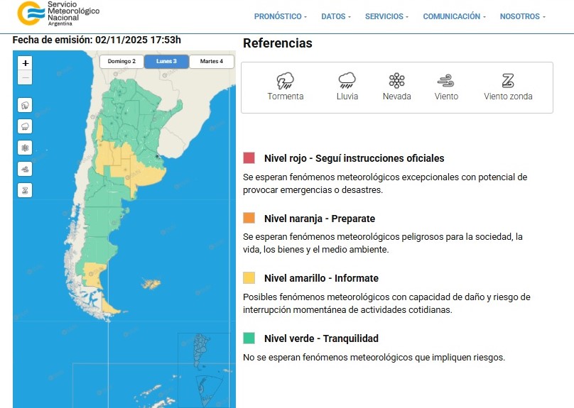 El Servicio Meteorológico Nacional (SMN) emitió una alerta amarillo por tormentas que abarca el sudoeste de la provincia de Buenos Aires, incluyendo la Comarca de Sierra de la Ventana, debido al riesgo de que las precipitaciones causen daños e interrupciones en las actividades cotidianas.