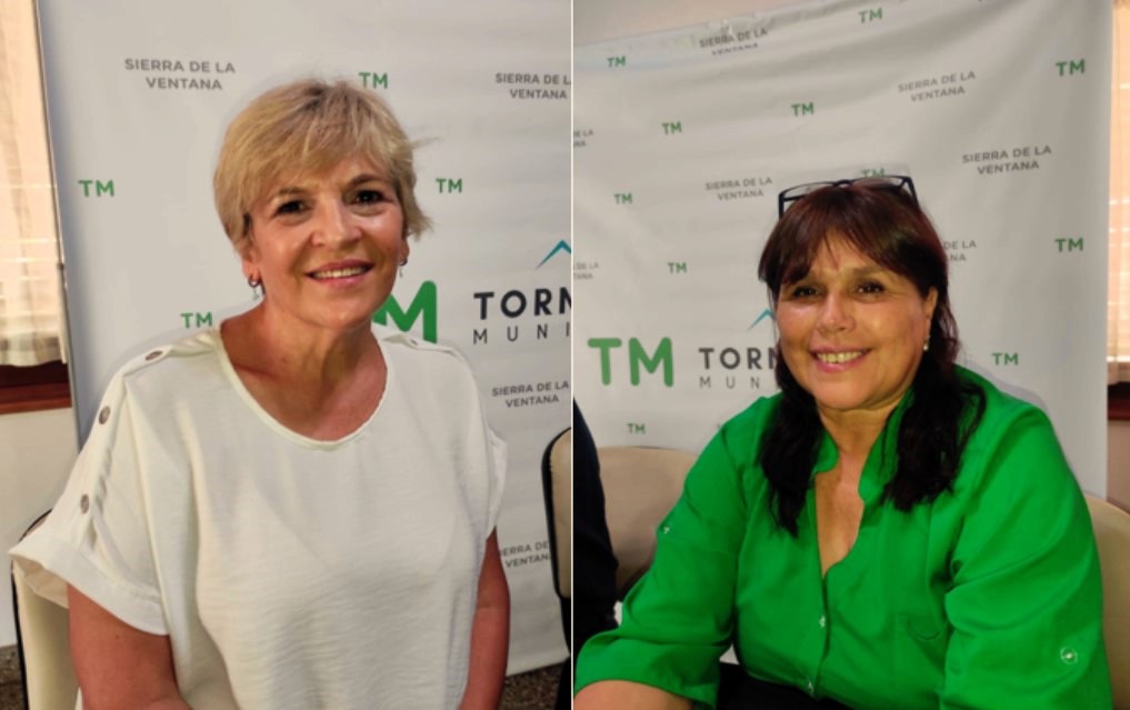 Susana Dos Santos y Adriana Nielsen en la Delegación municipal de Sierra de la Ventana.