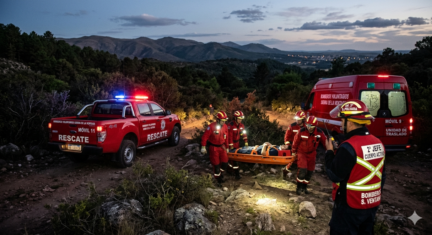 En la tarde de este sábado, siendo aproximadamente las 18:30 horas, el cuerpo de Bomberos Voluntarios de Sierra de la Ventana fue alertado sobre un accidente sufrido por una persona en las inmediaciones del sector conocido como Puesto de la Vigilancia, ubicado a unos 8 kilómetros de la localidad.