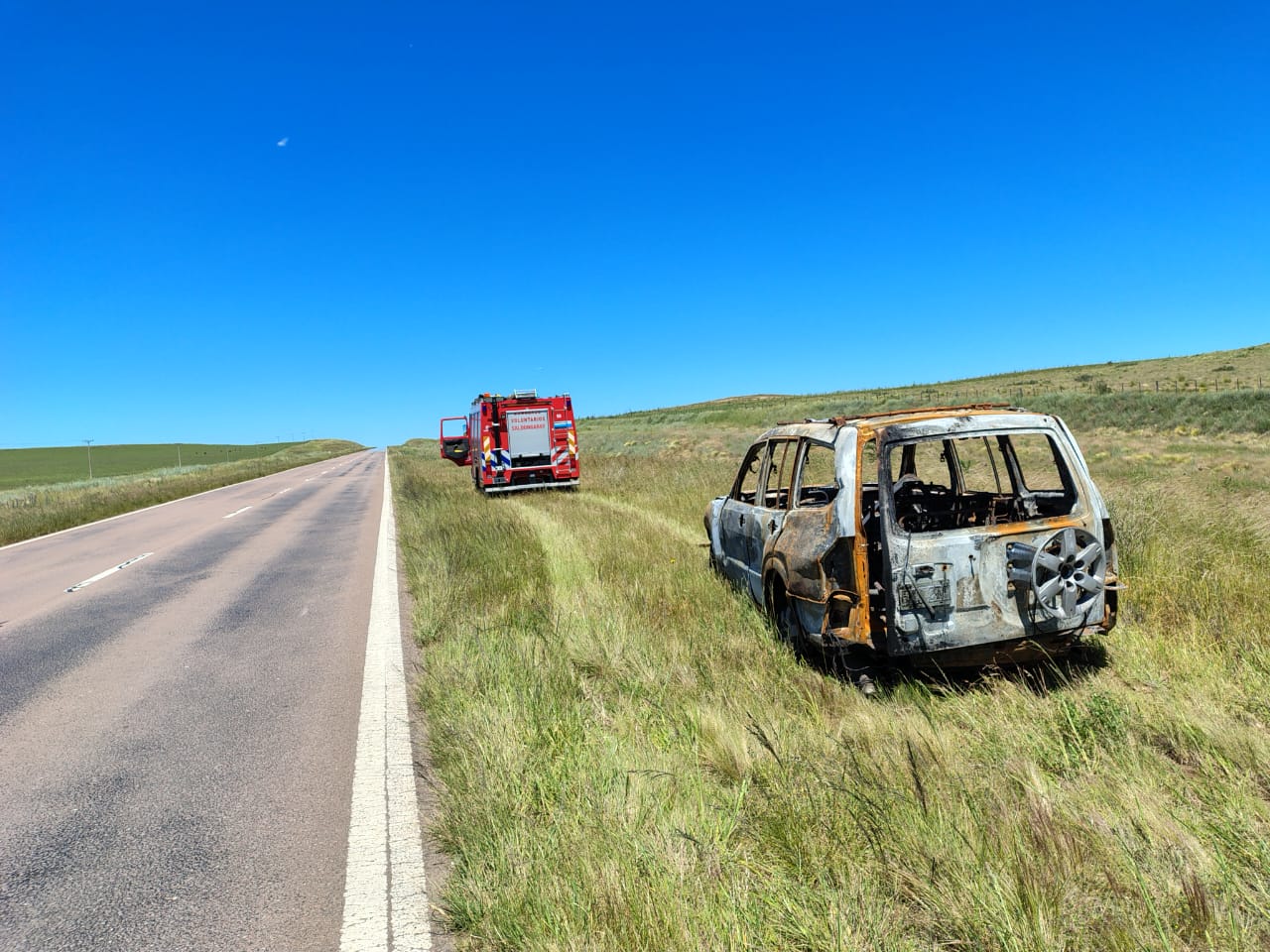 La chatarra, abandonada por tres días a la vera de la Ruta Nacional 72 entre Frapal y Saldungaray, invadía la calzada en jurisdicción de Coronel Pringles y generaba un riesgo latente.