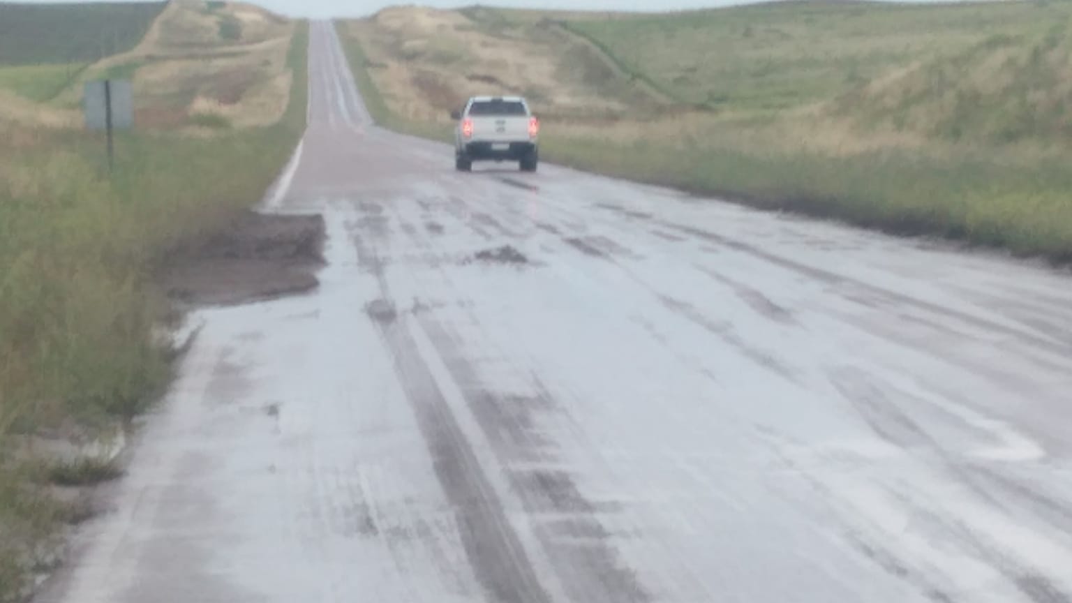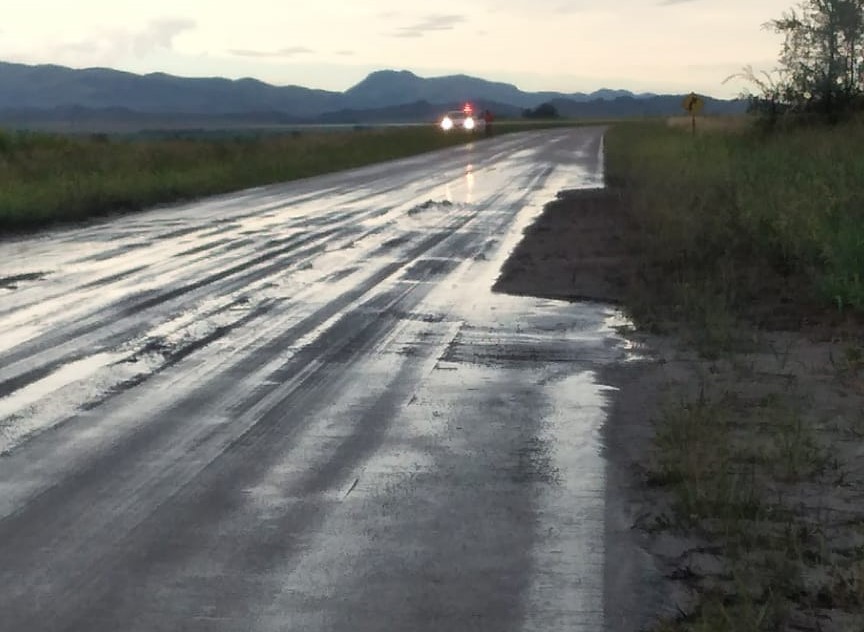 El cuerpo de bomberos voluntarios de la localidad solicita extrema atención a los conductores en la zona del establecimiento «Las Quebradas», donde las lluvias torrenciales afectaron la calzada.