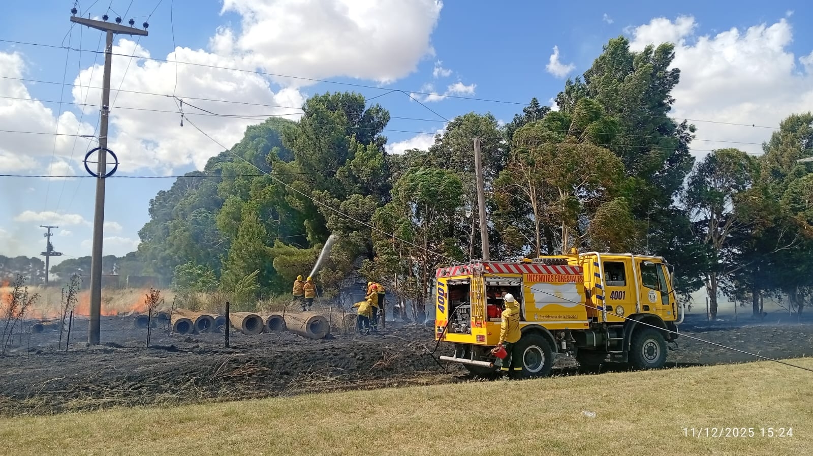 En la tarde de este jueves 11 de diciembre, se registró un principio de incendio en la banquina ubicada sobre la Escuela Técnica Nº 1, en el acceso a Tornquist.