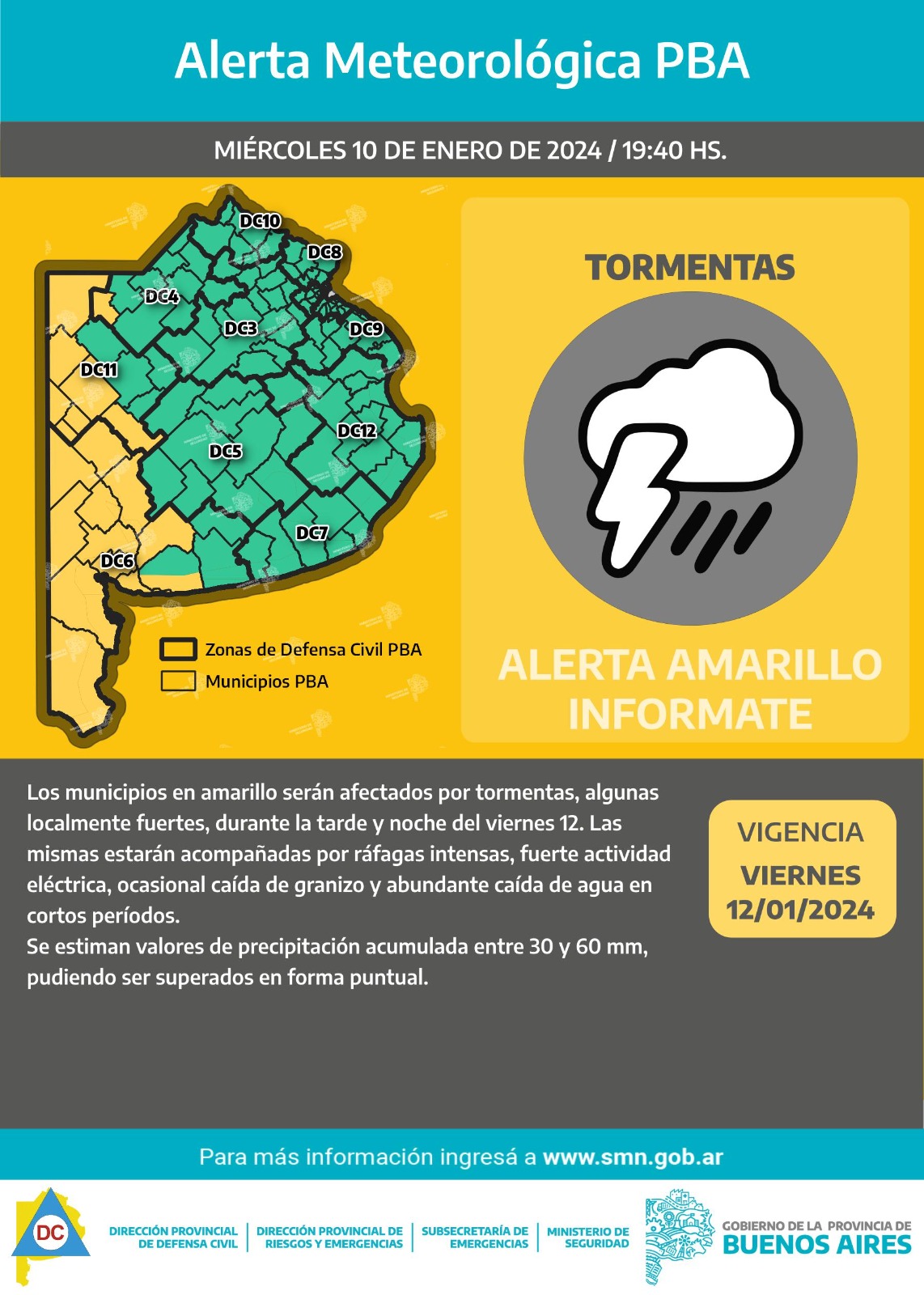 Tornquist Municipio informa que, entre tarde y noche de este viernes, se mantiene vigente un alerta amarillo en todo el distrito.