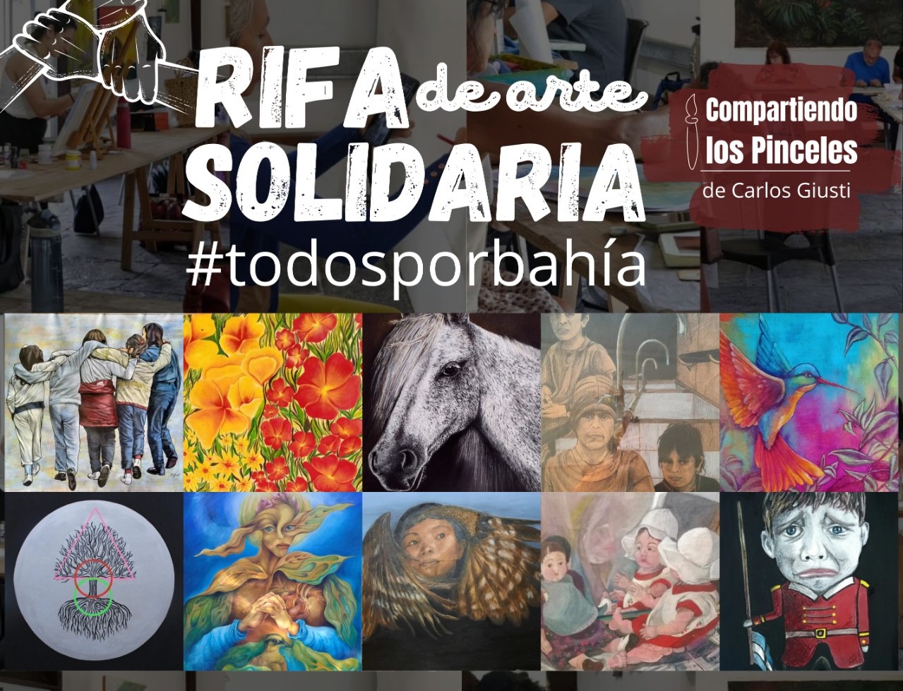 “Se rifan las obras realizadas en el taller y nos pareció que 10 mil pesos es un monto razonable para quienes pueden hacer el aporte solidario por un número” hace referencia al monto que proponen para transferir al alias BAHIAXBAHIA y ayudar económicamente a la comunidad bahiense.