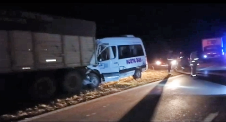 El siniestro ocurrió a la hora 19.50 Hs, en la Ruta Pcial. 72, km 25, entre camión con acoplado empresa Transporte Sierra. Ventana de Alberto Schumacher al mando Erik Claudio Schumacher y combi transporte pasajero Norte Bus al mando Daniel Rubén Herrera.