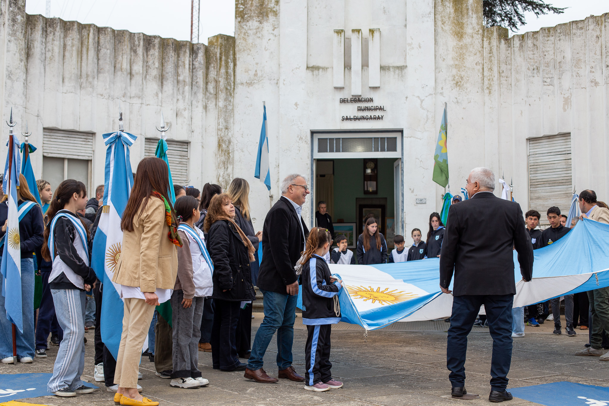 Esta mañana se llevó a cabo el acto protocolar por el 125º aniversario de Saldungaray, encabezado por el intendente municipal Sergio Bordoni, acompañado de autoridades, instituciones y vecinos.
