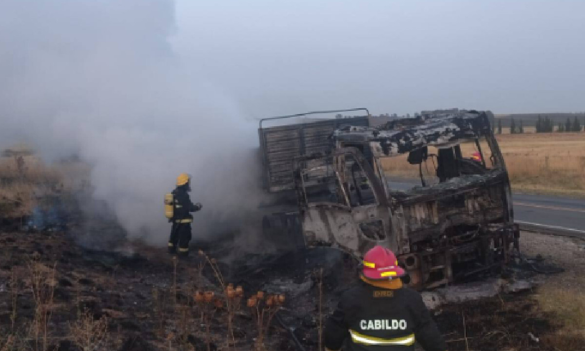 Un camión se incendió esta mañana, cerca de las 6, mientras circulaba por la banquina de la Ruta Provincial 51, a la altura del kilómetro 688, lo que motivó la intervención de los servicios de emergencia.